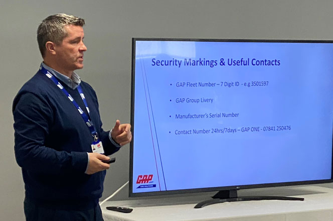 Iain Anderson, joint MD at GAP Group commented: “Engagement by the officers in attendance was excellent. To help identify equipment that could have been stolen, DC Chris Piggott pointed out what to look for, such as, missing number plates, serial numbers not having 17 digits and many more pointers. Great training for the officers in attendance, which will help recover more stolen equipment.”