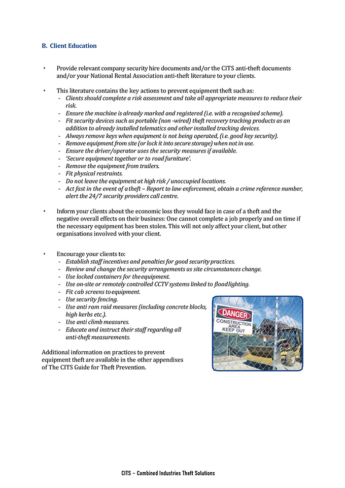 • Provide relevant company security hire documents and/or the CITS anti-theft documents and/or your National Rental Association anti-theft literature to your clients.