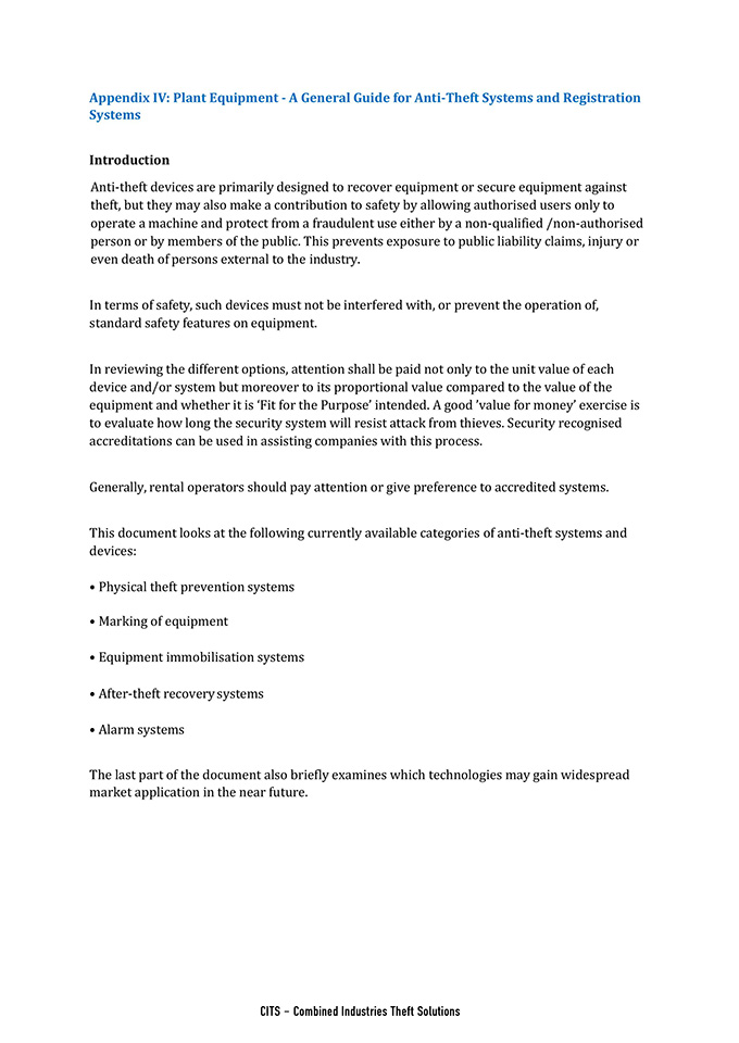 Appendix IV: Plant Equipment - A General Guide for Anti-Theft Systems and Registration Systems