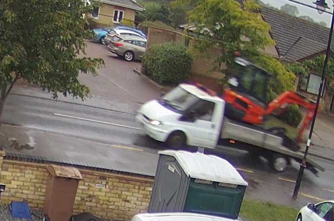 The digger was stolen from West Avenue in Chelmsford. The transit is believed to be a Mark 6 recovery truck, with a white cab and silver back with flashing beacons. This is quite a distinctive truck, also where the wheels are different colours.