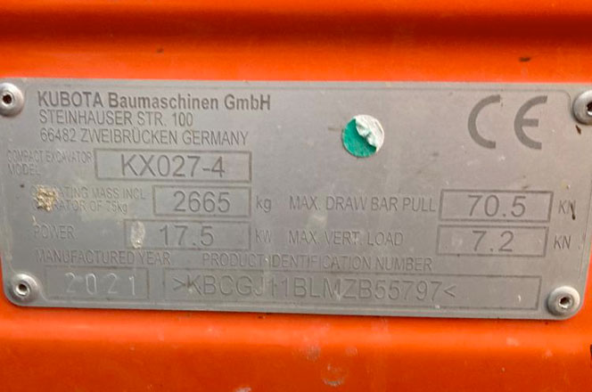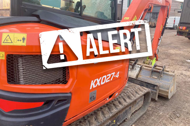 CITS have been alerted to a new Kubota KX027-4 Mini-Excavator, stolen from a construction site in the Epping, Essex area.