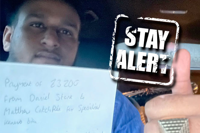 Latest offence yesterday with a clever fake bank transfer fraud for the purchase of a £3500 Specialized Kenovo Expert downhill electric bike!